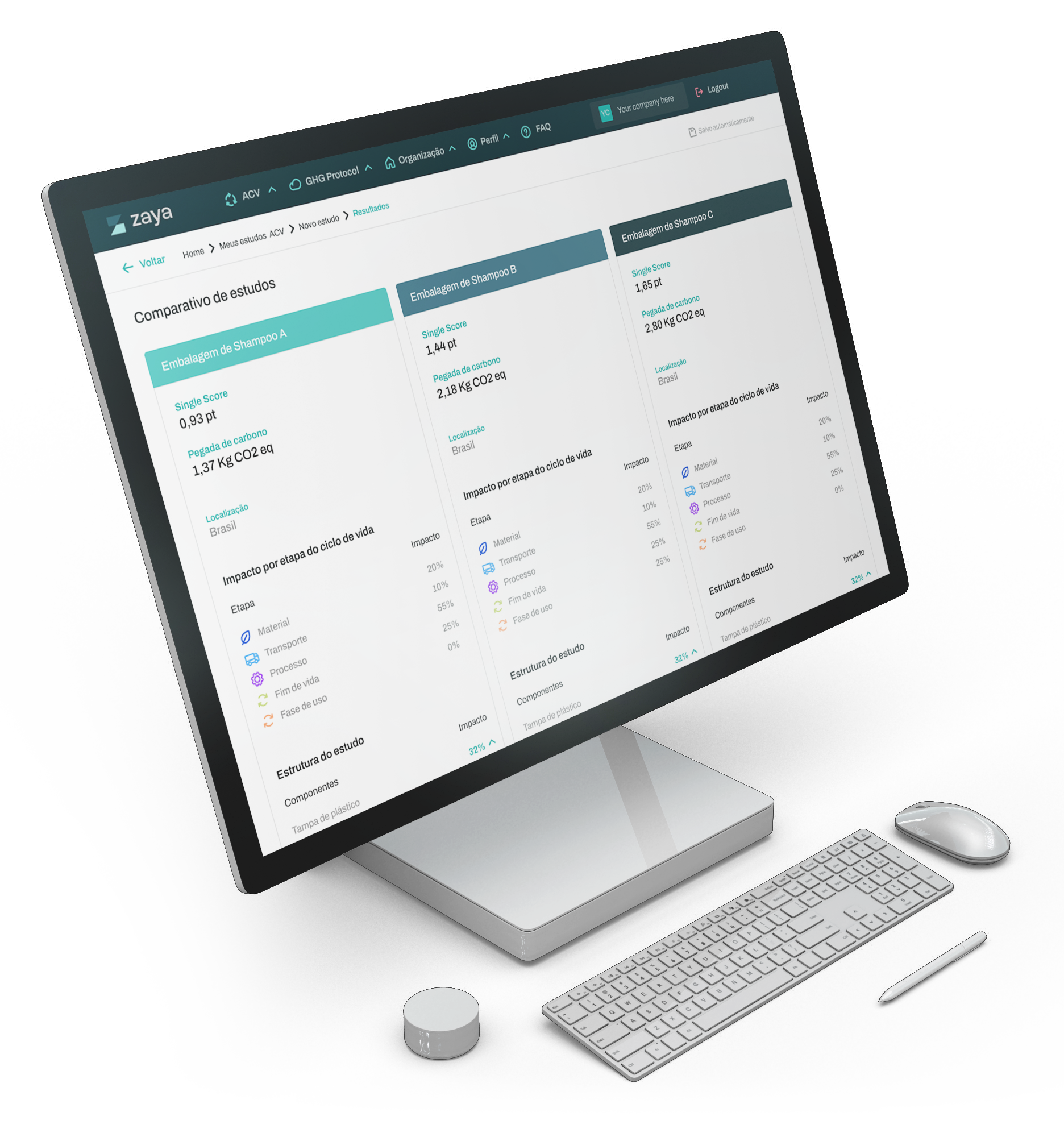 A plataforma da Zaya está em conformidade com os ISO 14040 e 14044, e usa metodologias científicas como o GHG Protocol e o Environmental Footprint.